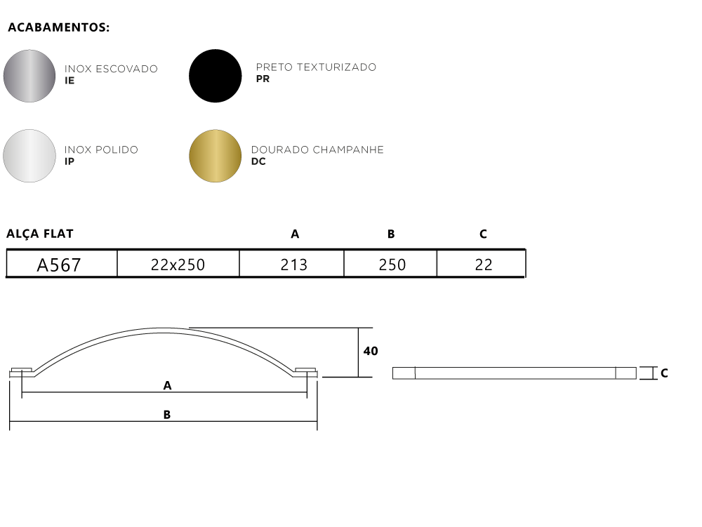 O puxador flat possui design moderno e minimalista, com traços retos. Os acabamentos polido e escovado são fabricados em aço inox 304, enquanto o acabamento preto e dourado é produzido em alumínio. É ideal para portas de correr e de giro, além de móveis e armários, oferecendo fácil manuseio, instalação prática e integração perfeita a projetos contemporâneos.